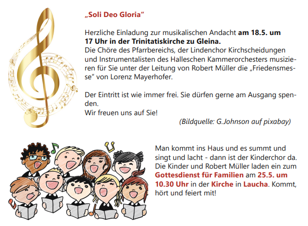 Aktuelle Informationen aus dem Pfarrbereich erhalten Sie unter www.pfarramt-laucha.de oder über die Mastodon-Seite https://kirche.social/@Laucha.